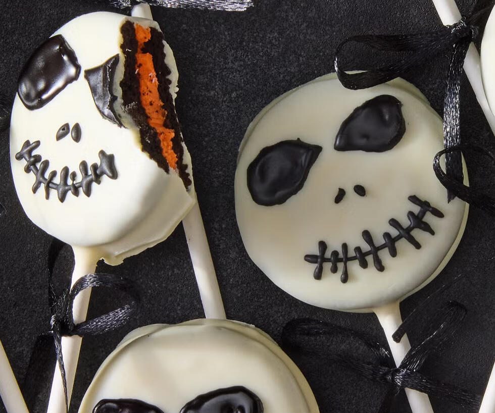 Pumpkin King Cookie PopsEveryone, hail to the Pumpkin King! These bite sized cookie pops are as simple as a sweet treat can get! Terrifyingly tempting Saint's Wake Oreos dipped in white chocolate on a stick, and decorated with the visage of the Pumpkin King himself! Take a bite!